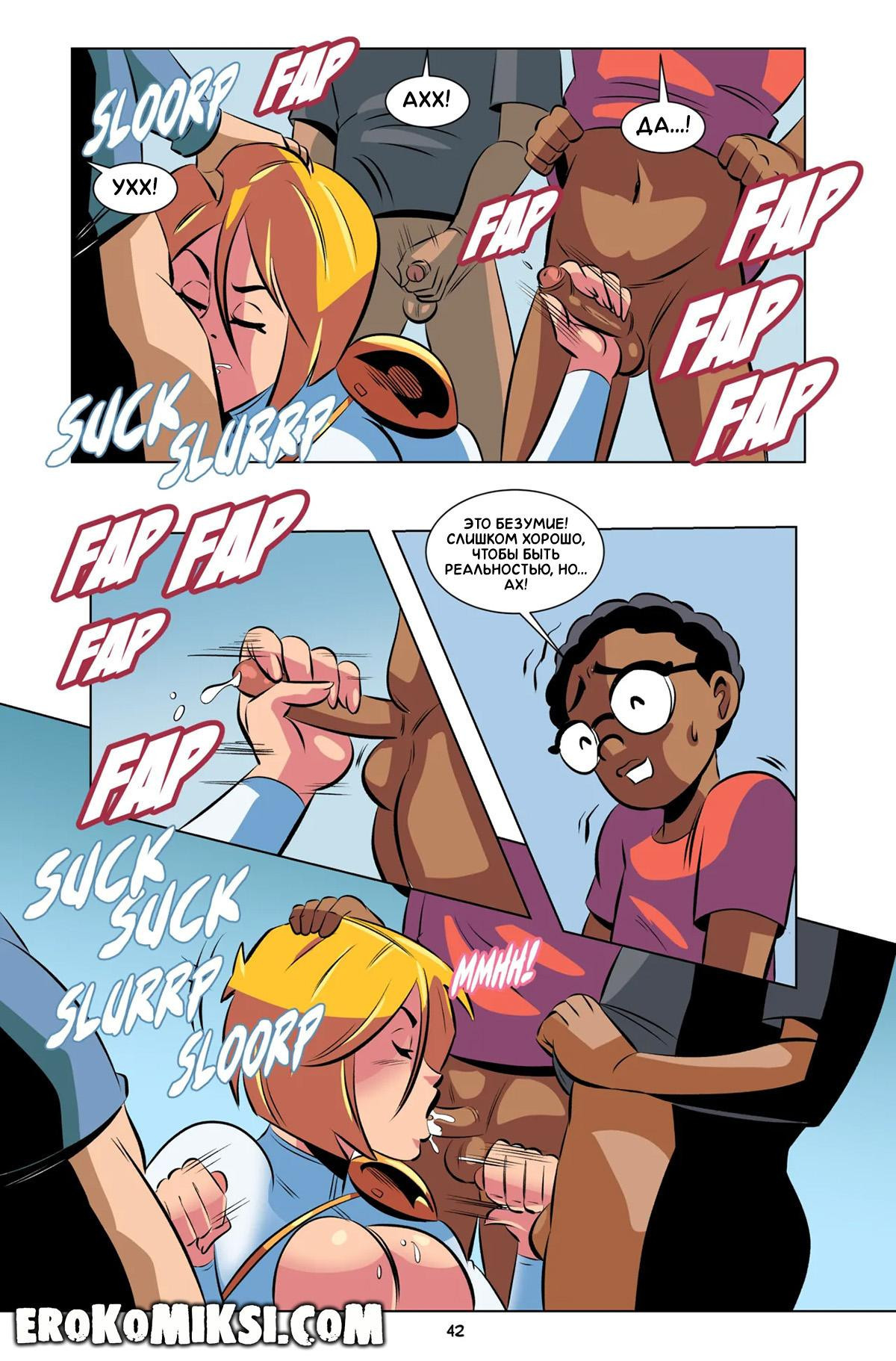 Порно комикс Пауэр Гёрл. Юный Шантажист. Сильная, могущественная, бесстрашная Пауэр Гёрл умудрилась засветиться перед юным пареньком, который сделал на неё компромат и теперь шантажирует её. Пауэр Гёрл вынуждена исполнять любые прихоти и желания паренька, который очень озабочен и постоянно желает, чтобы она ему отсосала и трахнуть огромные сиськи Пауэр, которая в принципе не особо сопротивляется, ведь член у парня довольно большой и кончает он как из пожарного шланга…