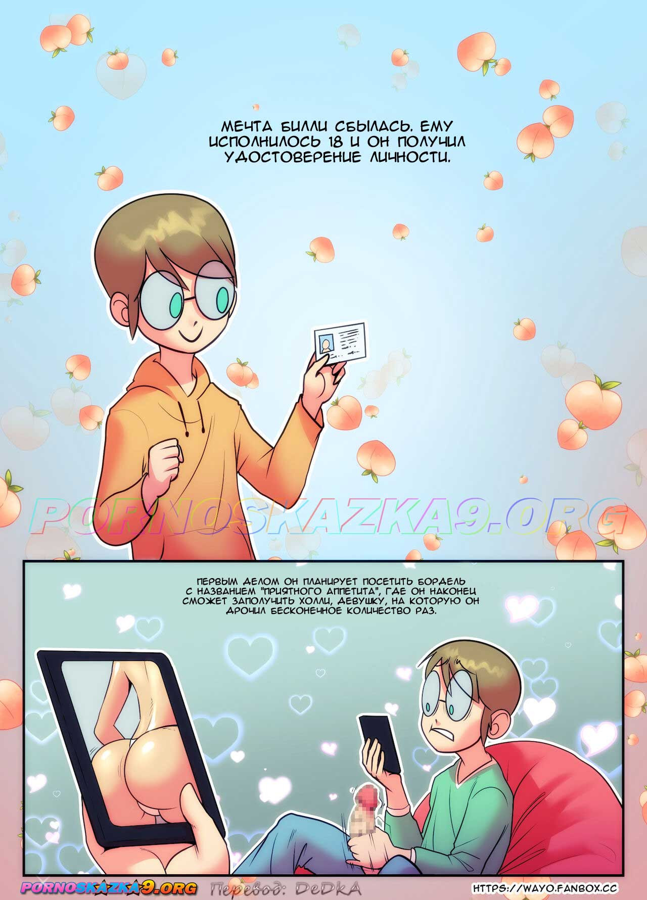 Порно комикс Приятного аппетита. Билли 18 долгих лет мучительно ждал, когда ему исполнится 18. И вот, наконец, дождался, теперь он взрослый! Получив удостоверение личности, Билли первым делом торопливой походкой направился в сторону борделя с заманчивым названием Приятного аппетита…